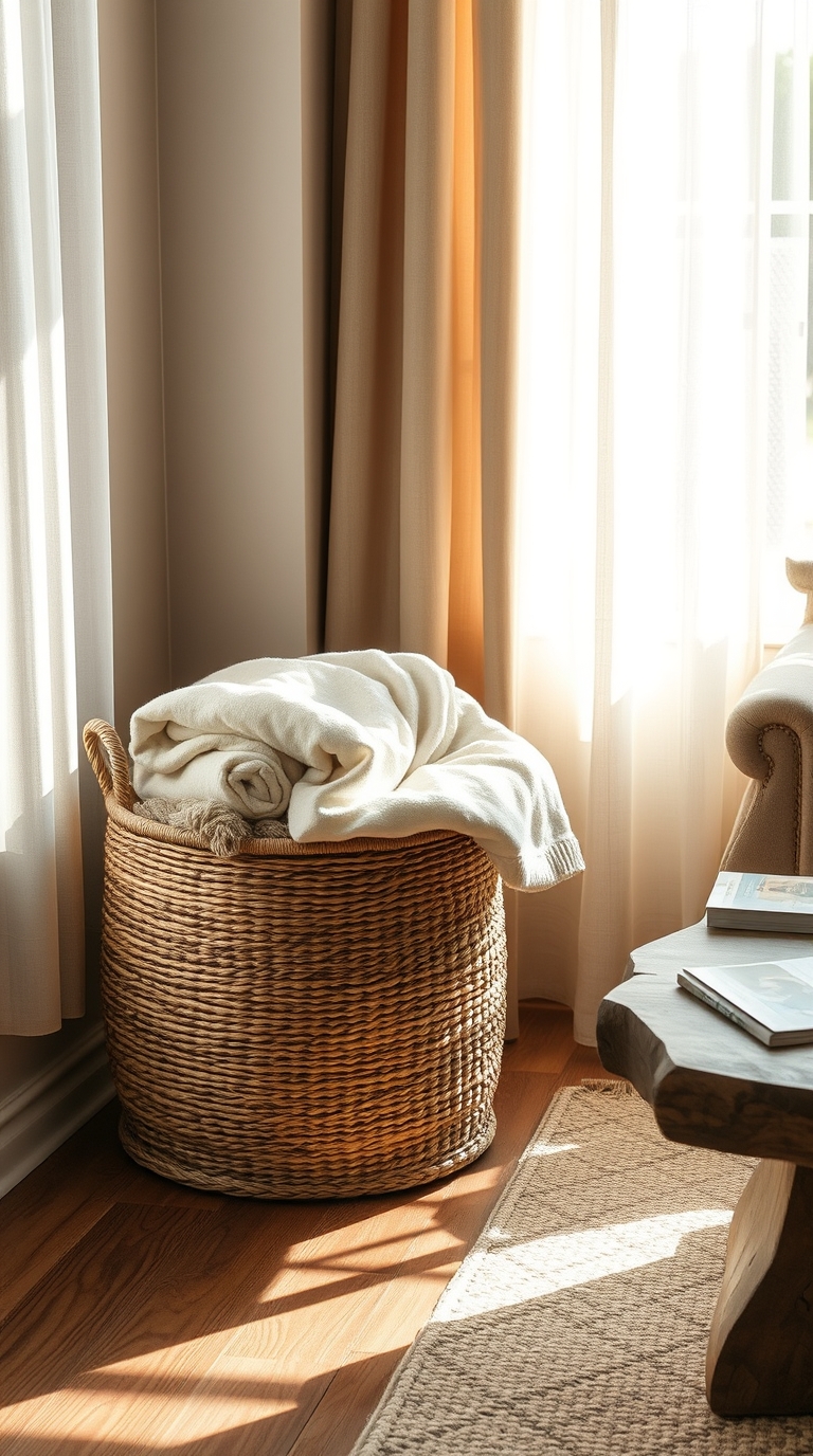 Use these baskets in various rooms, placing larger ones for blankets in the living area and smaller ones for knick-knacks in bedrooms. Their organic texture and shape can soften hard lines in your space, promoting a relaxed atmosphere.
