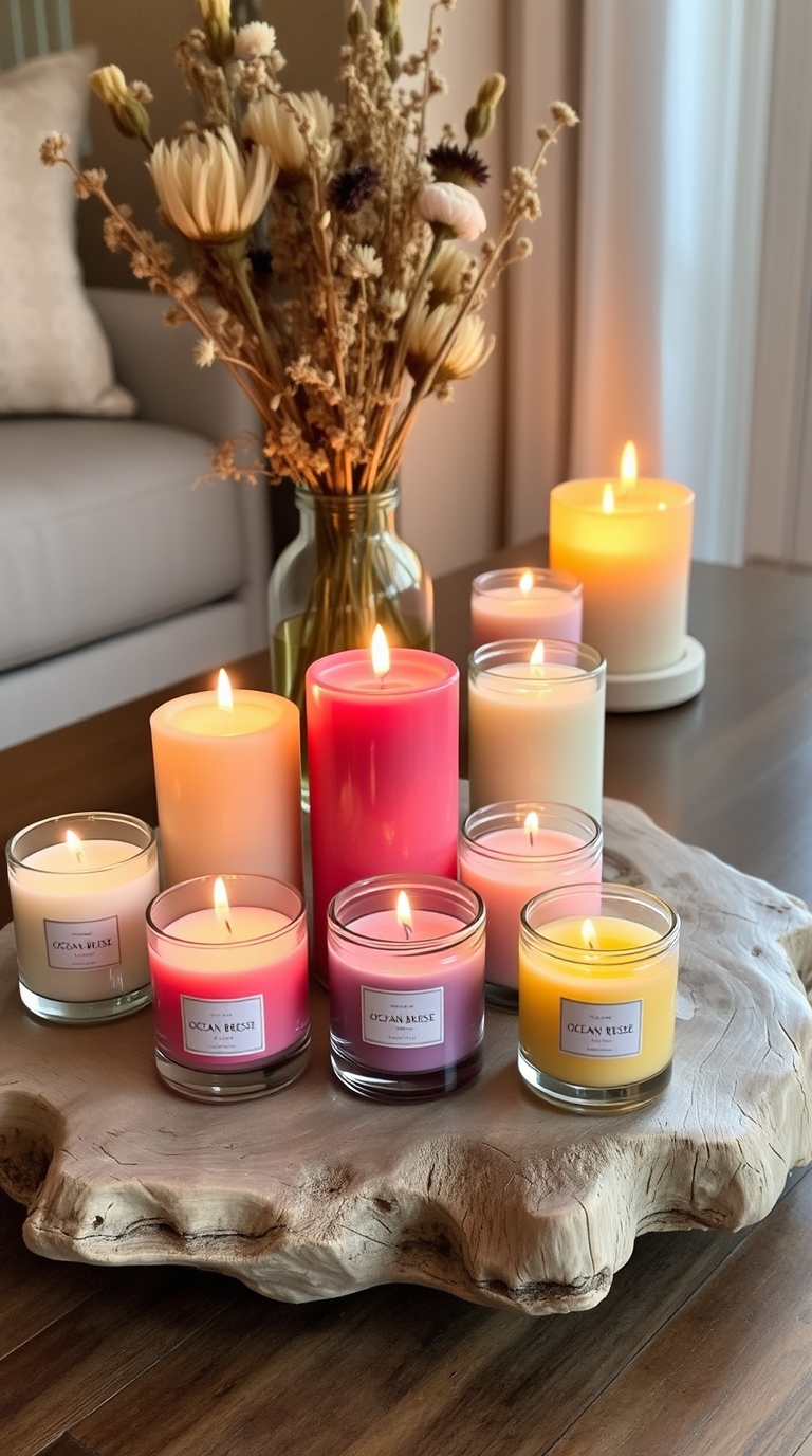 Set these candles in various rooms, ensuring you choose safe placements away from drafts, to avoid extinguishing the flame. Opt for natural wax candles for a cleaner burn and longer-lasting scent.