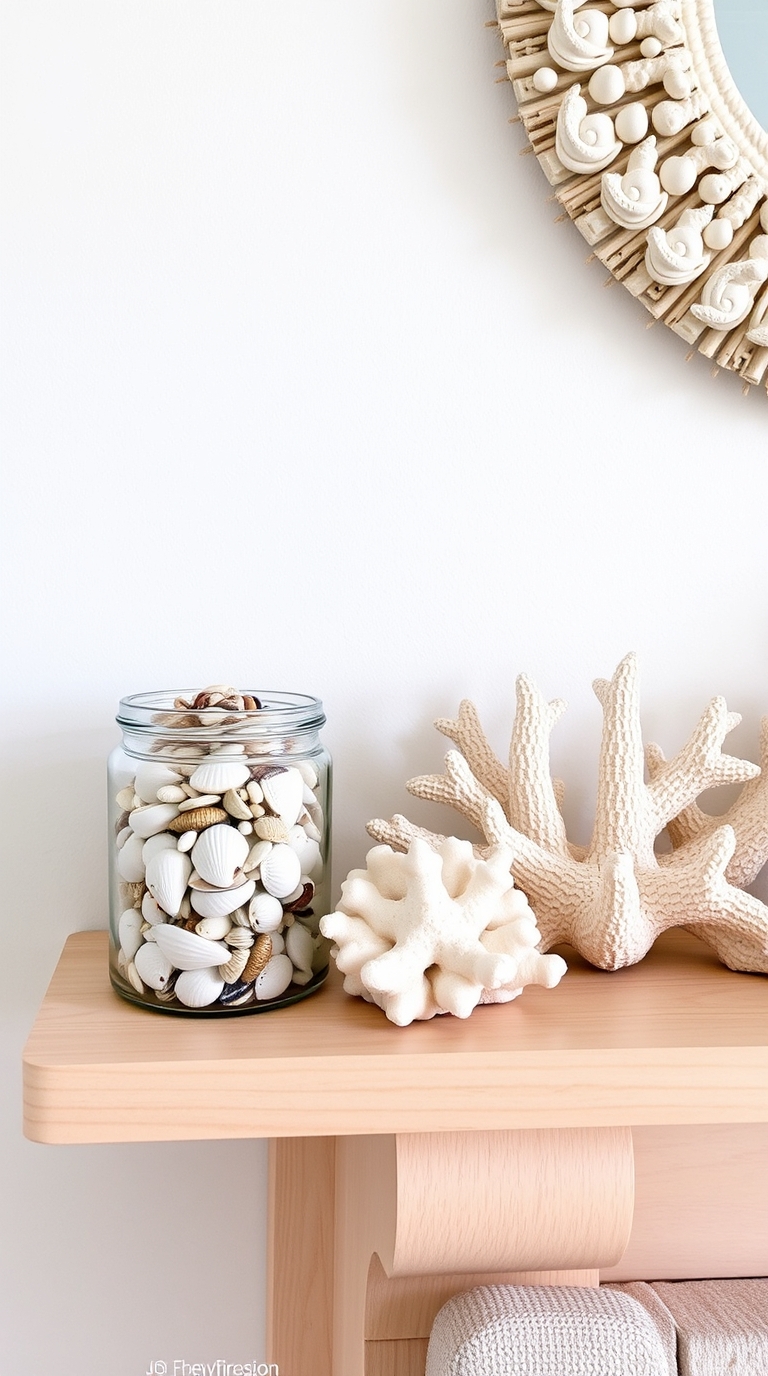 Incorporating shell and coral decor can enhance your beach-inspired theme, connecting your home to the ocean. These natural elements add unique textures and visuals, while also sparking joy and nostalgia associated with beach outings. Simple displays of shells or a vibrant coral piece can evoke memories of sunny days and warm adventures.